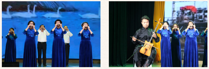 随后的教学成果展演中,来自昆区各街镇社区分馆的学员们带来了合唱、舞蹈、朗诵、口琴合奏、模特表演等丰富多彩的节目。