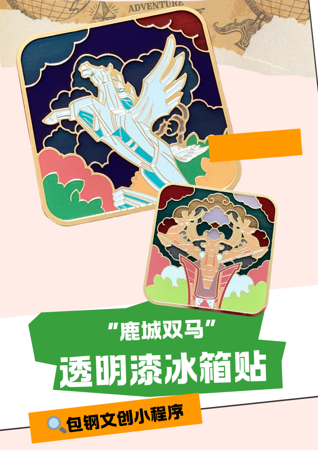 “鹿城双马”透明漆冰箱贴