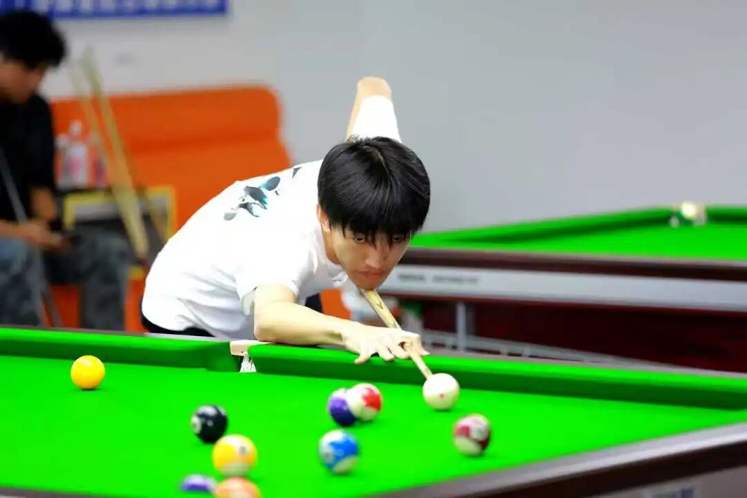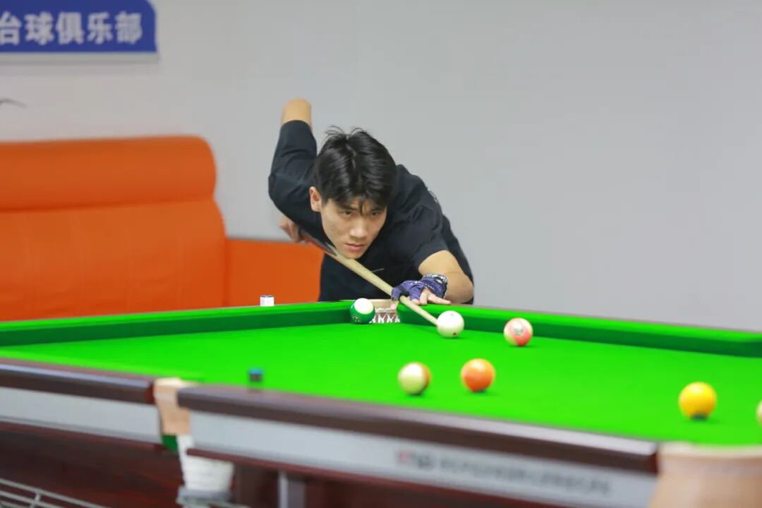 赛场上,年轻的选手们全神贯注,精准走位,巧妙击球,时而凝神思考,时而果断出击,清脆的击球声和阵阵喝彩声交织,充分展现了台球运动的魅力与学子们的竞技热情。