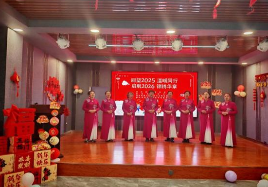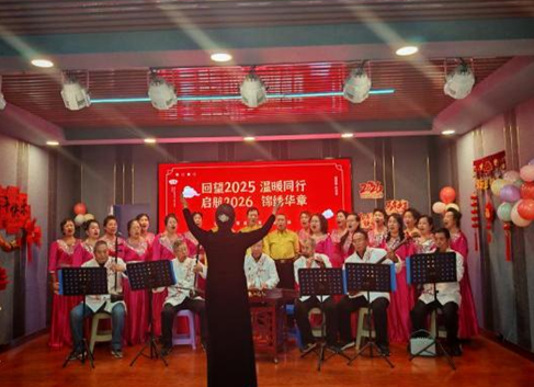 联欢会在锦绣嘉园艺术团带来的合唱《草原晨曲》《欢聚一堂》中推向高潮。欢快的旋律、嘹亮的歌声,传递着对新年的美好祝福,也感染着现场每一位观众,大家跟着节奏轻轻哼唱,现场成了一片欢乐的海洋。