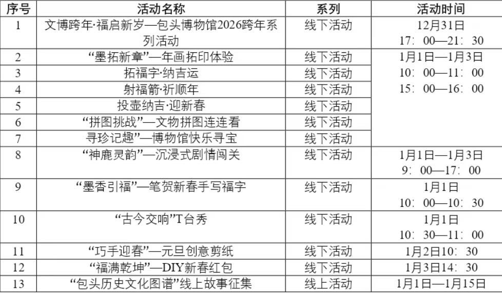 活动一:文博跨年·福启新岁——包头博物馆2026跨年系列活动