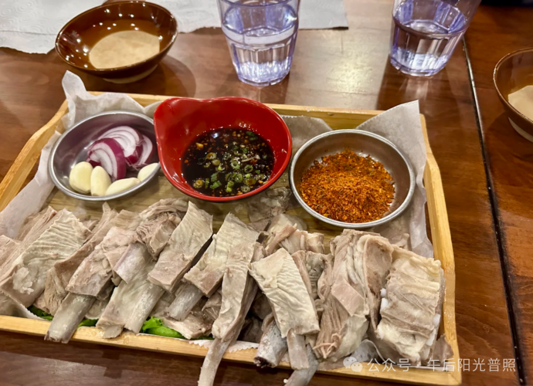中午的手扒肉现切现吃,蘸点盐粒,咸香直窜鼻尖,全是小时候家常的踏实感。