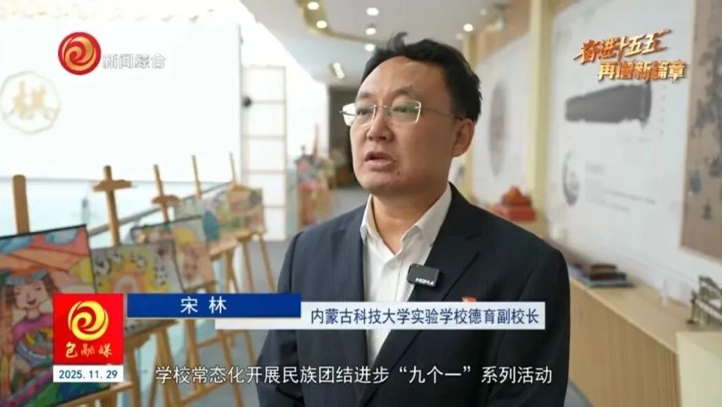 内蒙古科技大学实验学校德育副校长 宋林 学校常态化开展民族团结进步“九个一”系列活动,打造全景式、沉浸式的育人场景,帮助我们全体师生不断深化铸牢中华民族共同体意识,让“三个离不开”“四个与共”和“五个认同”,从思想上行动上真正落到实处。