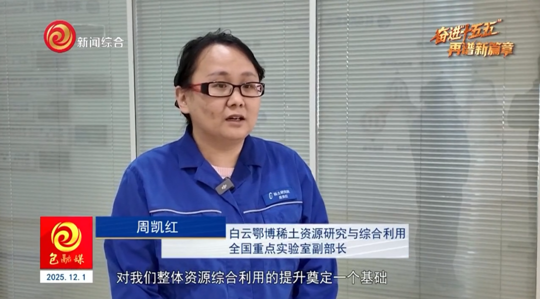 包头稀土研究院白云鄂博稀土资源研究与综合利用全国重点实验室副部长 周凯红 我们有巨量的白云鄂博稀土资源,发现了一些新矿物,在稀土资源的提取与资源综合利用方面形成了技术的集成,形成了高性能的稀土材料,对我们整体资源综合利用提升奠定一个基础。