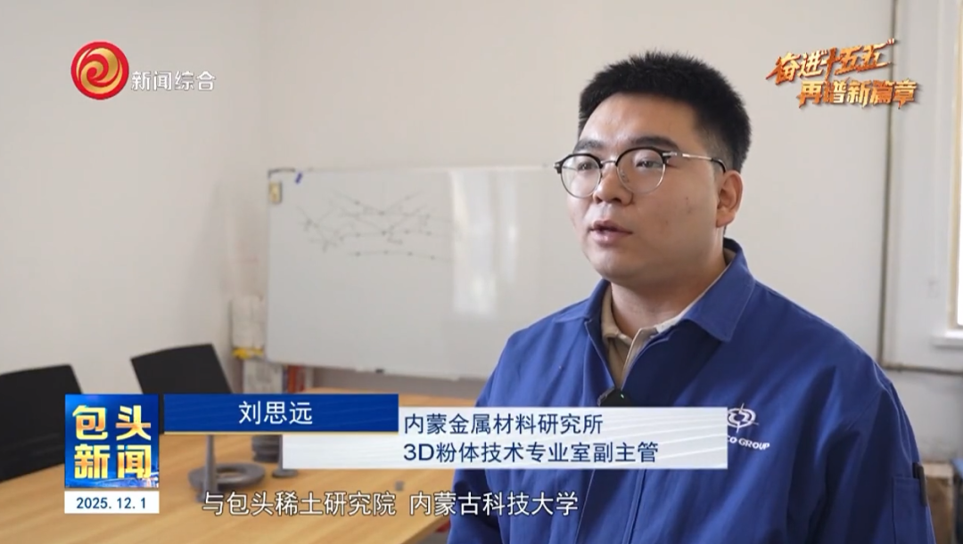 在内蒙金属材料研究所,科研人员正在对“稀土+”新型钛合金打印材料进行前期研发。今年8月底,这项技术在“蒙科聚”第57期专题发布会上首次亮相,因其突破传统增材制造关键瓶颈吸引了科研院所和稀土企业的关注。