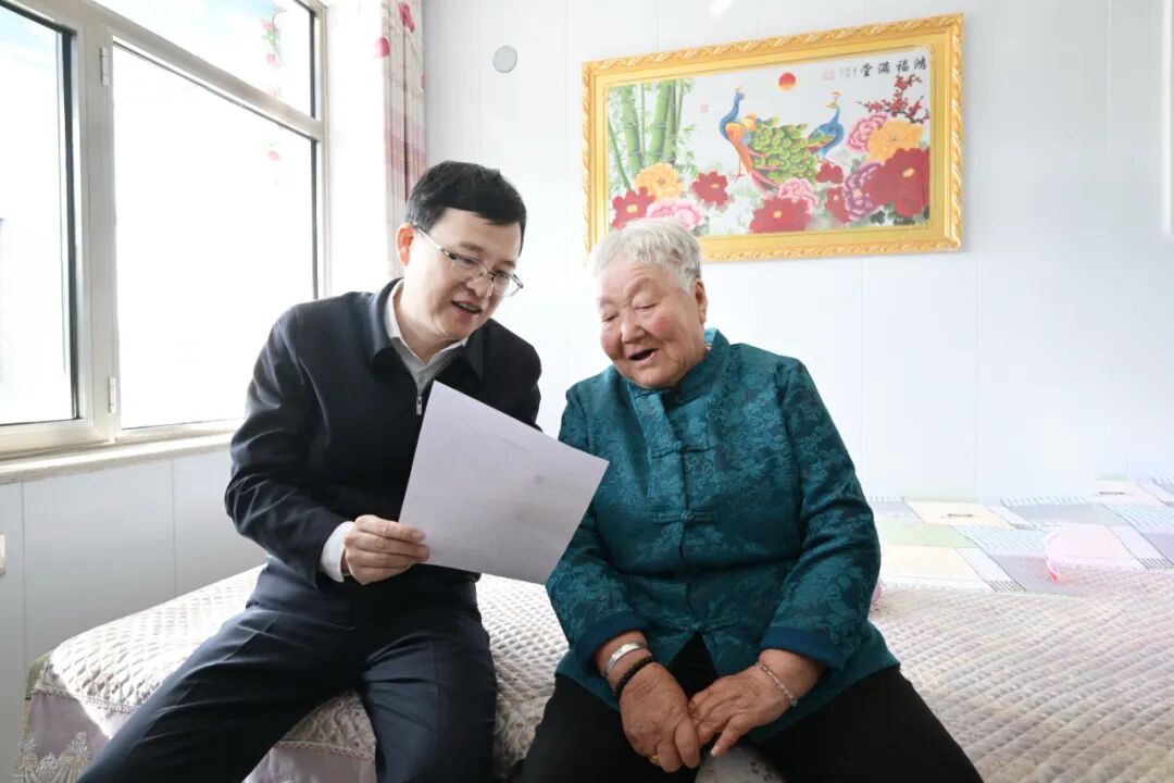 10月13日,市委书记陈之常来到固阳县怀朔镇兴圣公村,走访了解韩守女家生产生活情况。记者 李强 摄
