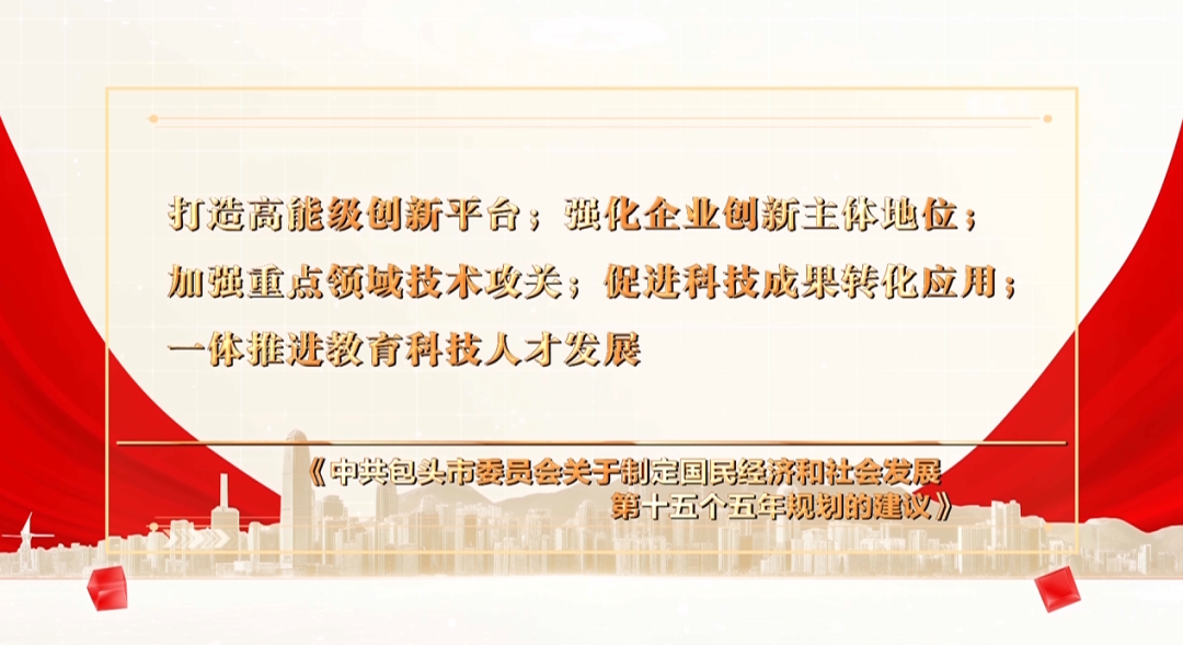 科技创新是引领高质量发展的强劲引擎。市委十三届十次全会审议通过的《中共包头市委员会关于制定国民经济和社会发展第十五个五年规划的建议》(以下简称《建议》),将“创新突围”确定为包头培育产业发展新优势、提升城市综合能级的“三个路径”之一,把“科技创新水平大幅提高”确定为“十五五”时期重点要实现的目标之一。本期《奋进“十五五” 再谱新篇章》,我们将聚焦深入实施创新驱动发展战略,解读提升区域科技创新整体效能的具体路径。