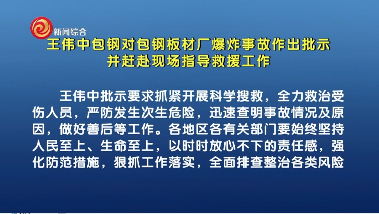 王伟中包钢对包钢板材厂爆炸事故作出批示并赶赴现场指导救援工作