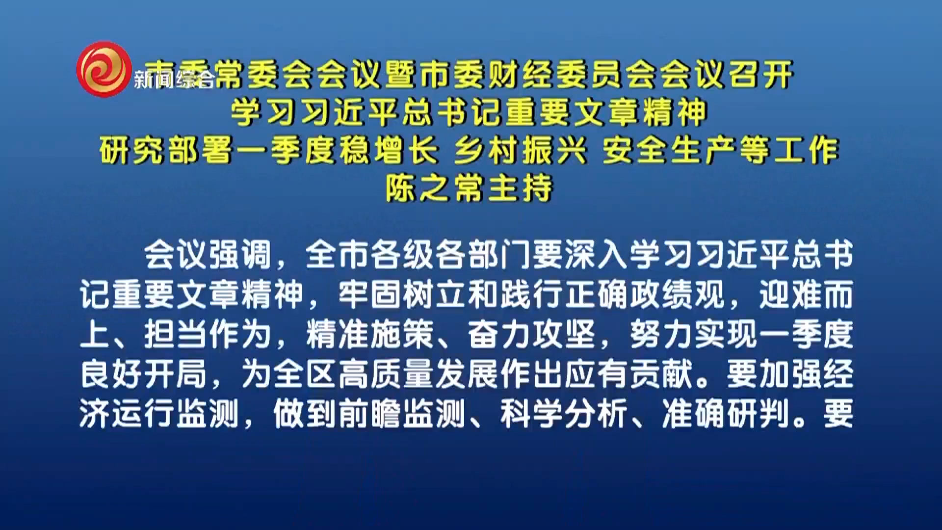 市委常委会会议暨市委财经委员会会议召开 学习习近平总书记重要文章精神 研究部署一季度稳增长 乡村振兴 安全生产等工作 陈之常主持