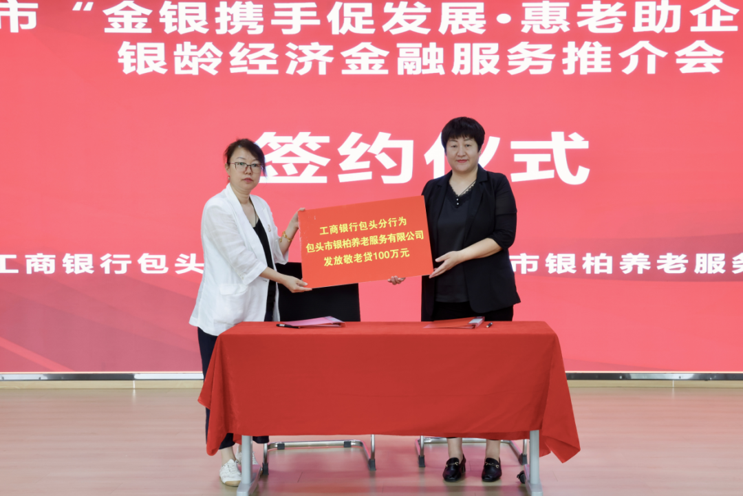 工商银行包头分行在“金银携手促发展·惠老助企谋新篇”银龄经济金融服务推介会上与包头市银柏养老服务有限公司进行现场签约。
