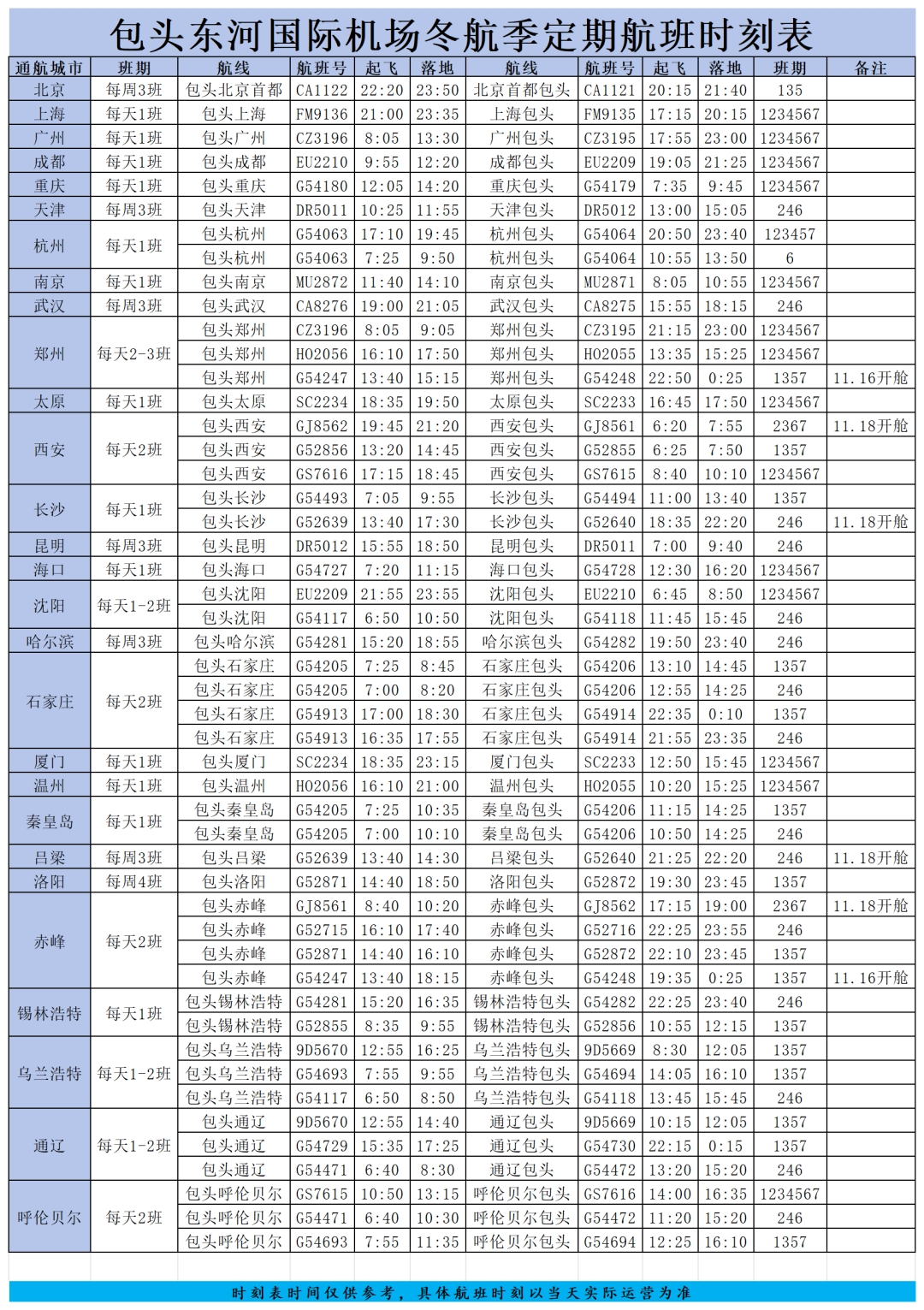 包头直飞,每日一班!