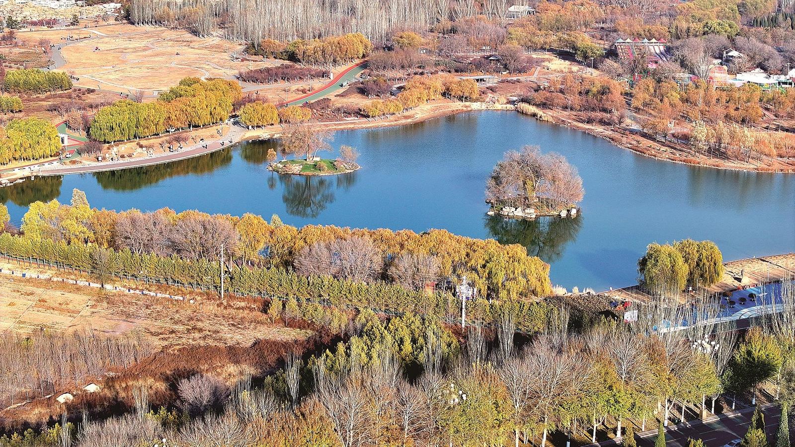 奥林匹克公园的初冬,是一汪湖嵌在城市里的温柔——澄澈水域托着小岛,秋黄未褪的树影裹着岸线,风过处,疏朗的枝桠把天的蓝、水的清揉成了松弛的底色。