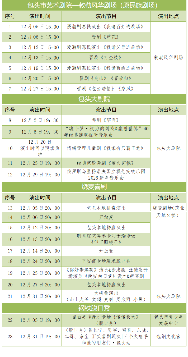 速看包头12月小剧场演出安排,从漫瀚剧到脱口秀,总有一款适合你!