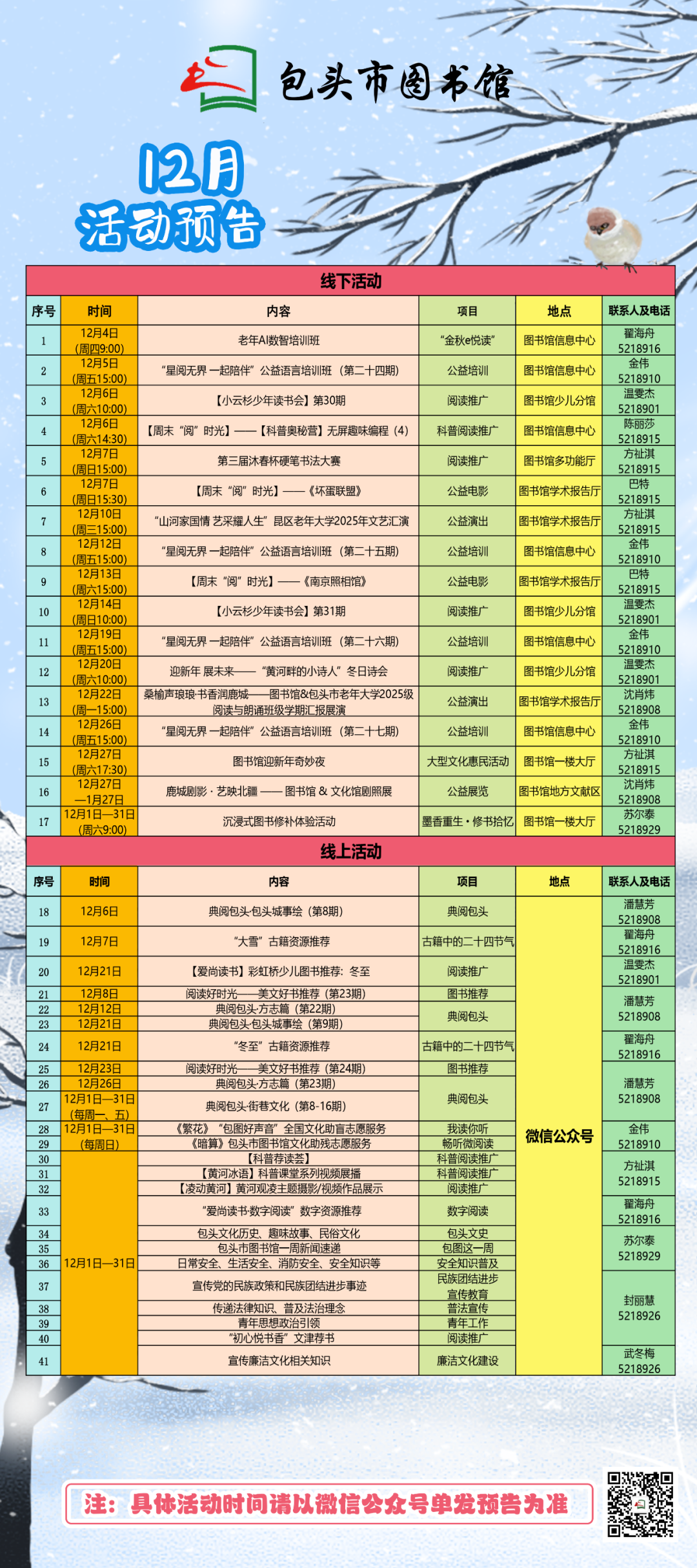 包头市图书馆发布12月活动预告。详情