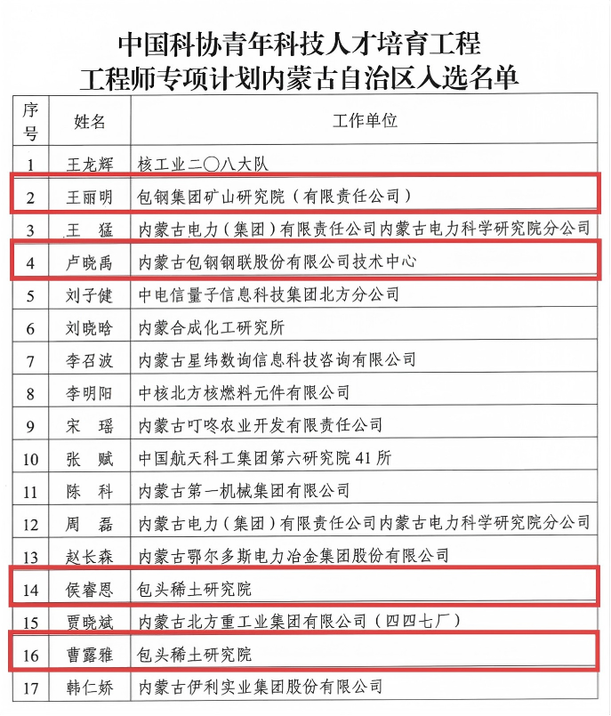 包钢集团4名青年科技人才入选2025年度青年科技人才培育工程工程师专项计划培育人选名。详情