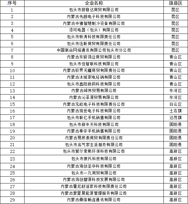 包头市商务局关于发布第二批2026年家电以旧换新、数码和智能产品购新补贴活动销售企业名单的公告