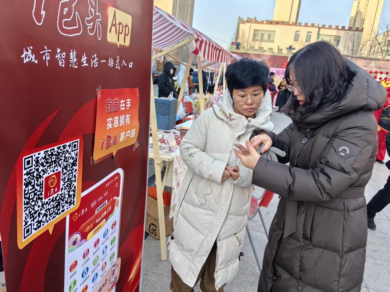 包融帮帮团服务区,人气同样“爆棚”。市融媒体中心的记者们化身“指导员”,围在居民身边手把手教居民操作“i包头”客户端,耐心细致地讲解客户端的各项实用功能,还为居民们送上墨香四溢的春联,将便民服务与新春祝福一同送到大家心坎里。