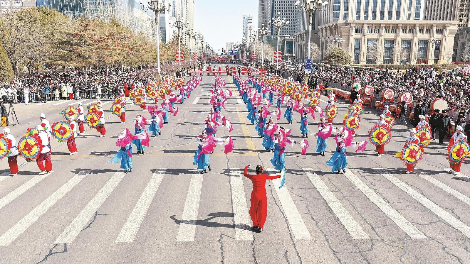 2026年新春国潮街头巡游活动在钢铁大街火热上演。