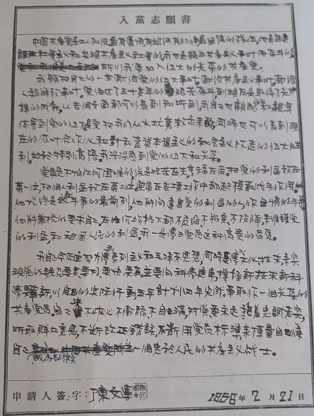 多年来,他用坚守传递温暖与力量。在学雷锋纪念日到来之际,青山区委组织部从“浩瀚”的资料中找到了陈文学老人的入党申请书原件,将这份保存了70年的入党志愿书复原成册,并将复刻好的入党志愿书送到了他的手上。