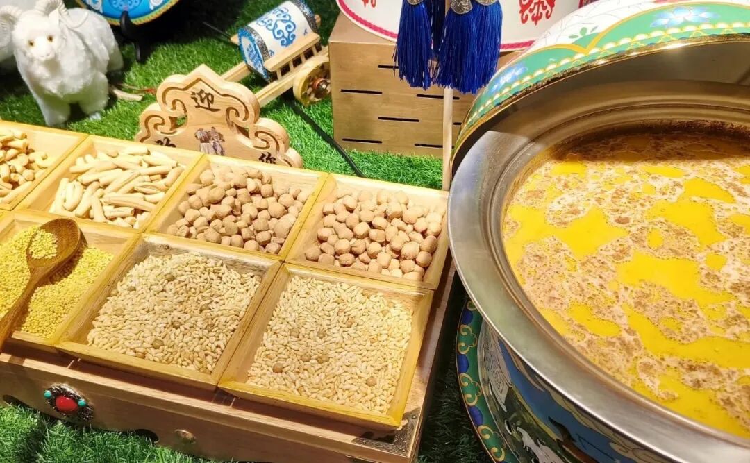 内蒙古特色早餐,离不开奶茶——青砖茶或茯茶熬煮的茶汤,加入鲜奶和盐,煮沸后撒上炒米、奶豆腐、牛肉干。清明时节喝上一碗,驱寒暖身,开启元气满满的一天。