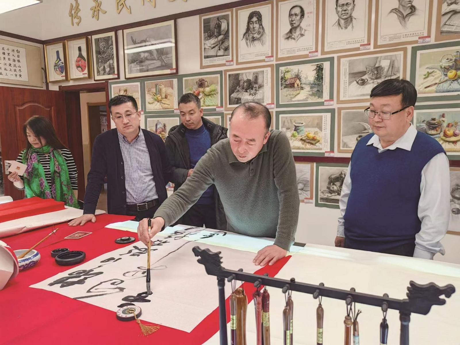 除了在学校和书画协会授课,孙万利还受邀为包头市第四中学国学馆、社区及乡镇等地的书法爱好者及群众授课。在5年多的文艺志愿服务活动中,他累计志愿服务场次达260余场,服务时间800余小时,基层群众受益人数达12080余人次。他从未因个人原因或忙碌而推辞志愿服务,甚至多次放下自己重要的事务,全身心投入到基层服务中。