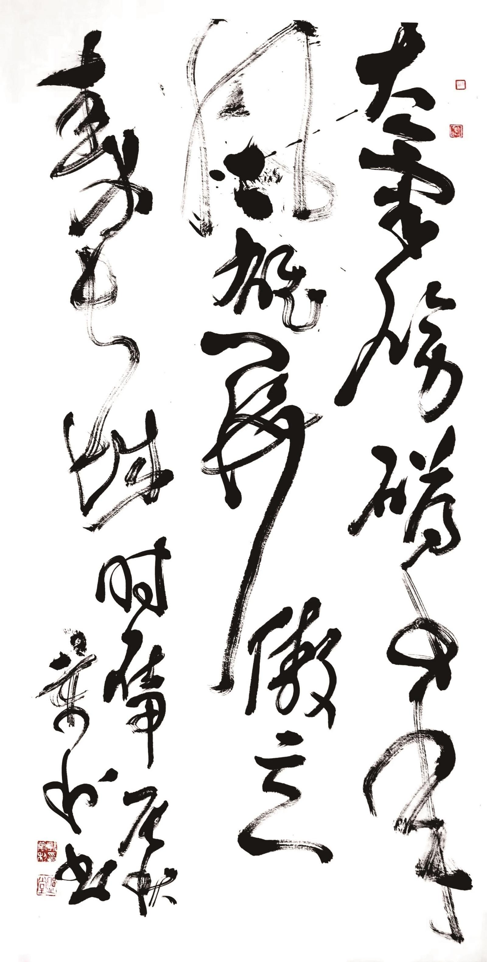 孙万利与书法的缘分,始于年少。他师从著名书法家史守仁,在史老师的悉心指导下,他在楷书、行书、草书领域不断深耕,打下了深厚的功底。他对书法艺术有着天生的敏感和悟性,尤其钟情草书。草书的跌宕郁勃、酣畅淋漓,恰好与他炽热的情感和洒脱的性格相契合。在他的草书中,既能看到血气充盈、韵味横溢的畅快,又能感受到他对书法法度的精准把握,看似率意信手,实则功力至深。孙万利的作品中,线条如灵动的舞者,在纸面上跳跃、交织,形成独特的韵律,每一笔都蕴含着他对书法的热爱和对艺术的执着追求。