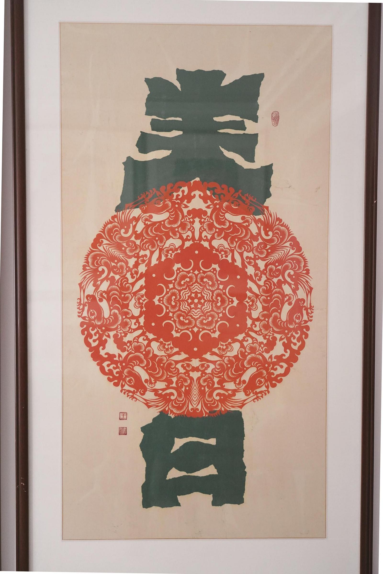剪纸作品《六合同春》。