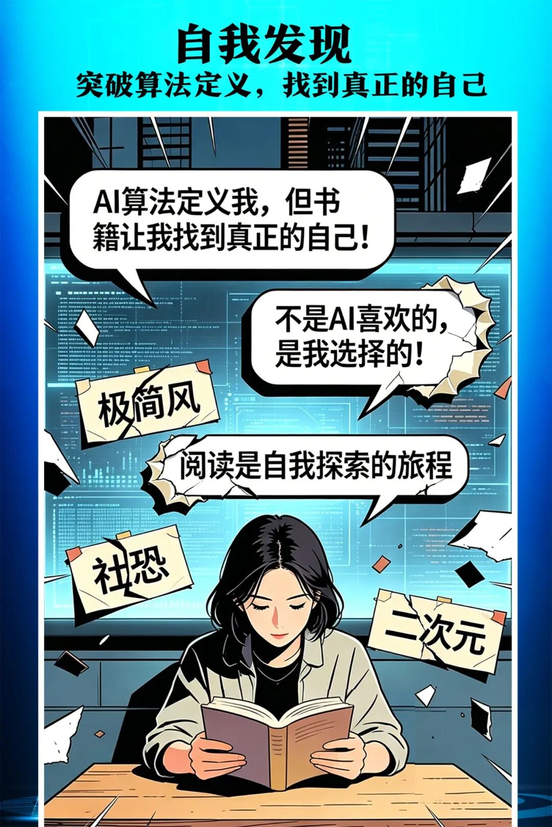 AI时代,信息碎片化、极速化,15秒短视频、3分钟短文、一键获取答案,我们的注意力被切成碎片,渐渐失去了“沉下去”的耐心。读不了厚书、啃不动经典、坐不住板凳。而纸质书的阅读恰恰需要“慢”,需要放下手机、隔绝弹窗,在完整的文字里专注、沉浸,让浮躁的心静下来。