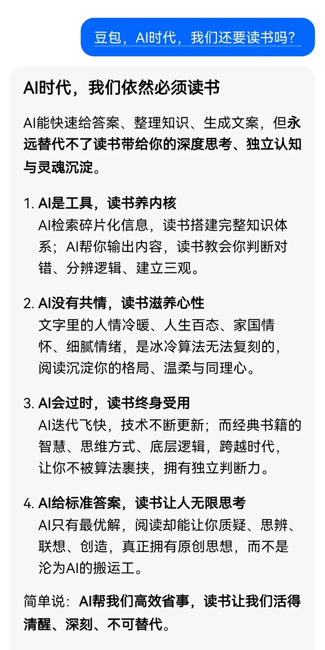 “AI时代,我们依然要坚持读书。”