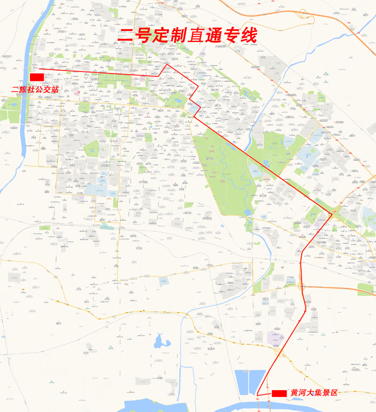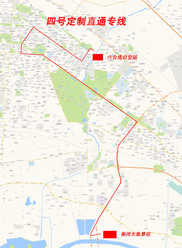 2.线路走向:六合成公交站—兵工路—阳光路—文化路—富强路—钢铁大街—建设路—210国道—南黄线(雁翔路)—黄河大集景区