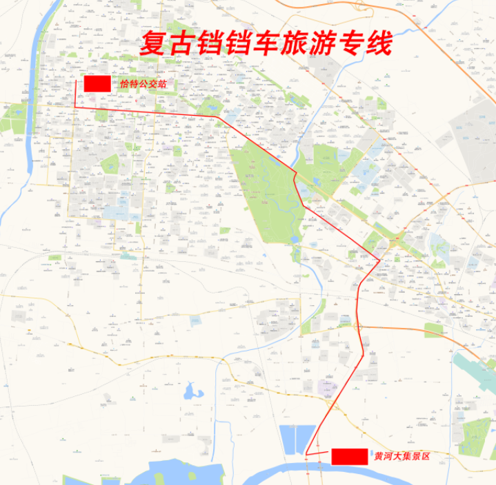 2.线路走向:职教园区北门—世纪大道—复兴大街—建华路—沙河街—210国道—210国道辅路—黄河大集景区