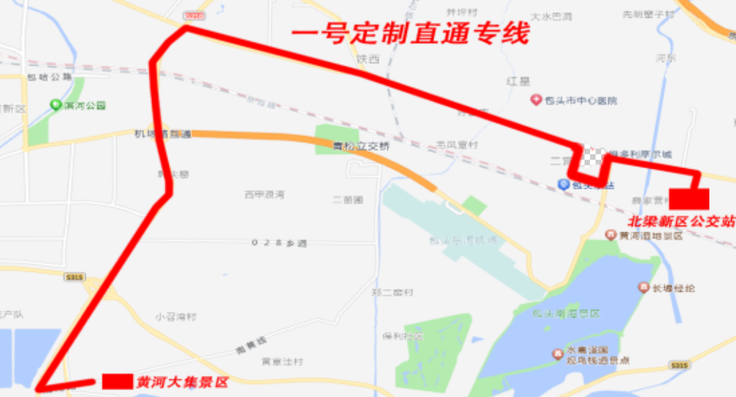 2.线路走向:包头师范学院(东门)—自由路—建设路一210国道一雁翔路—黄河大集景区;