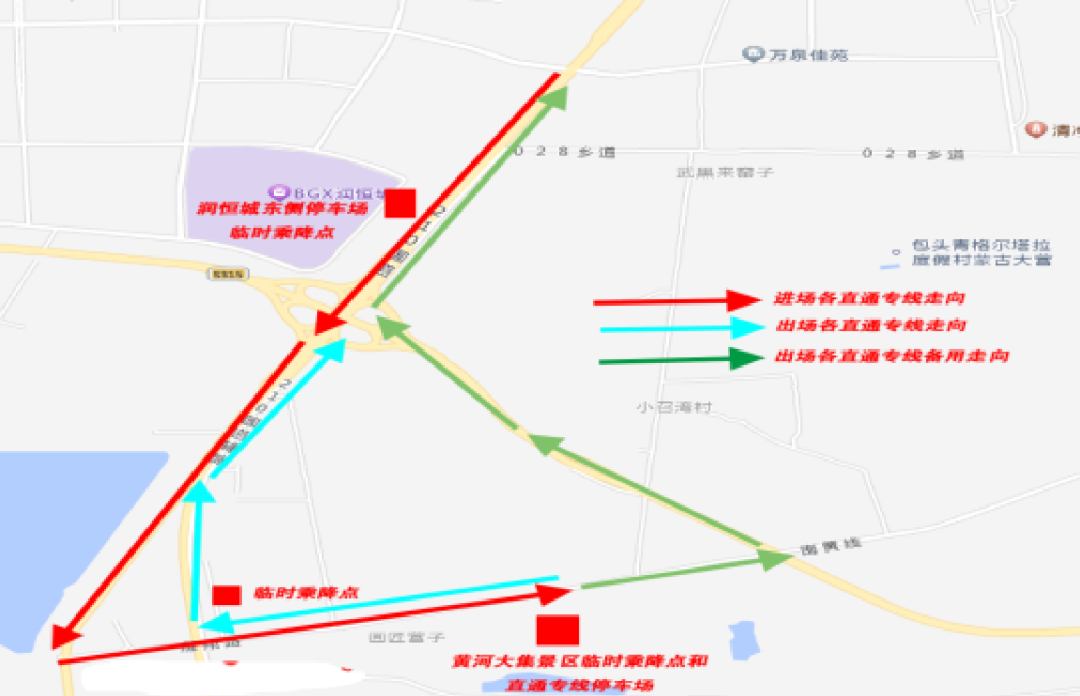2.临时站点设置:润恒城东停车场、黄河大集景区