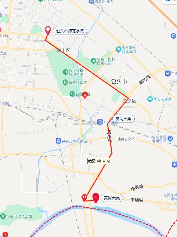 3.沿途设站:包头站、内蒙古科技大学、钢铁职业技术学院、稀土国际大酒店、曹家营子、御澜世家、稀土之星幼儿园、檀香湾南门、曹钦小区南门、天顺风电设备公司、中科院产业化基地、上沃土壕、海亮科技、金杰集团、黄河大集景区