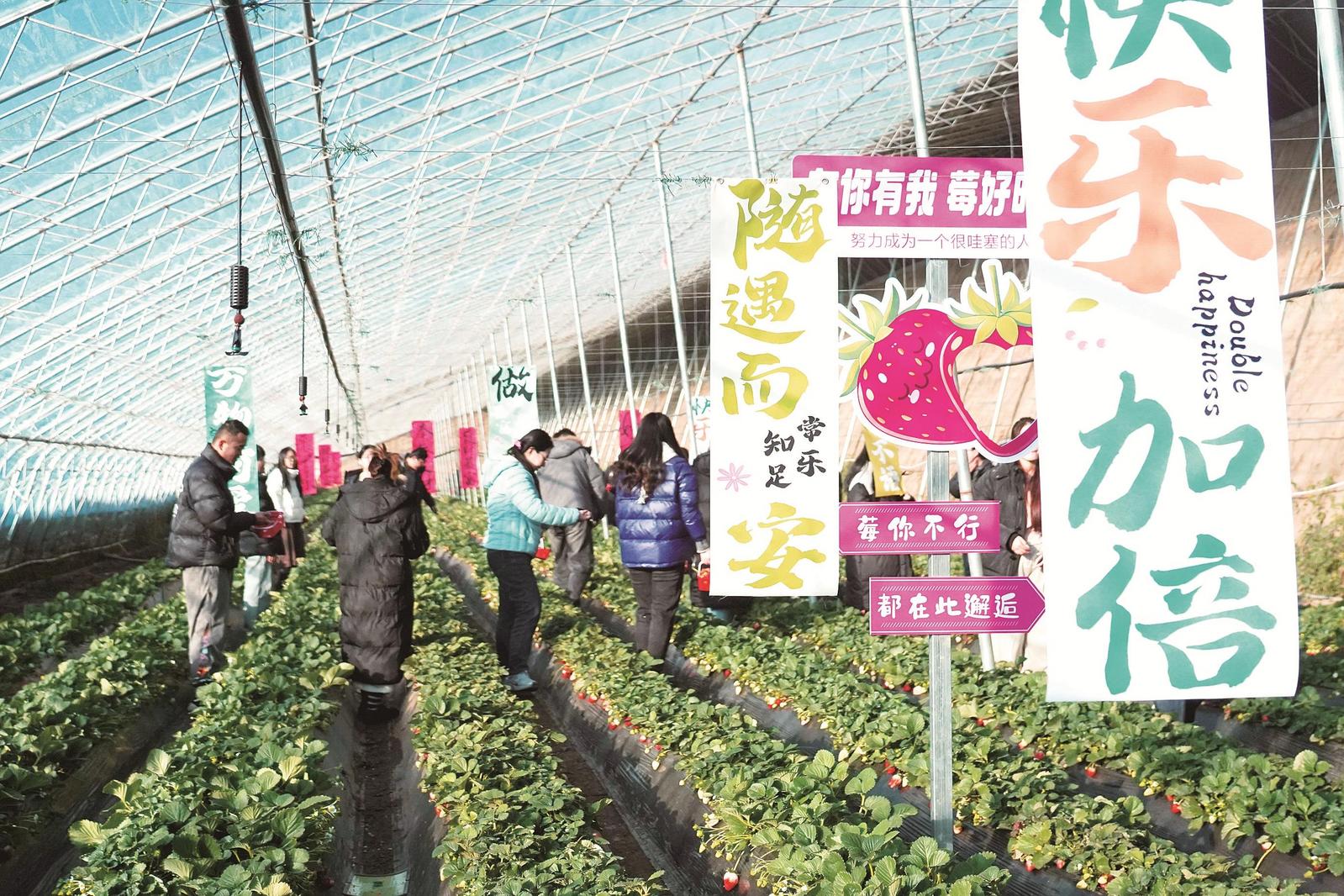 市民采摘草莓。