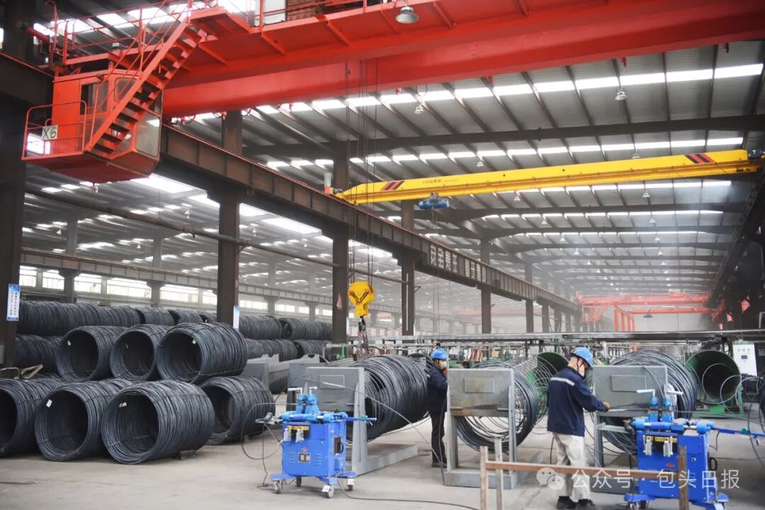 在包头市盛达鑫金属有限公司年产8万吨PC钢棒生产线项目厂房里,工人忙碌的身影穿梭其间,对讲机里不时传来生产调度指令。当下的包头,这样繁忙的生产和建设场景随处可见。