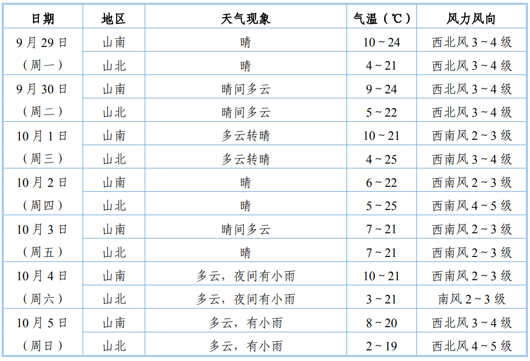 未来一周(9月29日至10月5日)