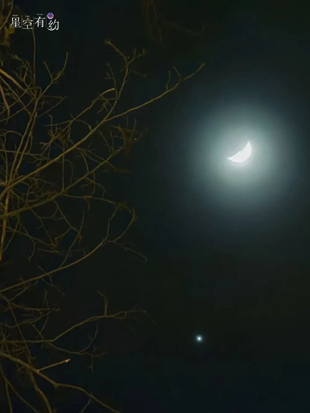 2023年3月24日,在云南梅里雪山拍摄的金星伴月。(王晋 摄)