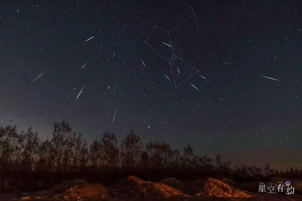 2020年10月21日,在黑龙江大庆拍摄的猎户座流星雨(多张叠加)。(刘成山 摄)