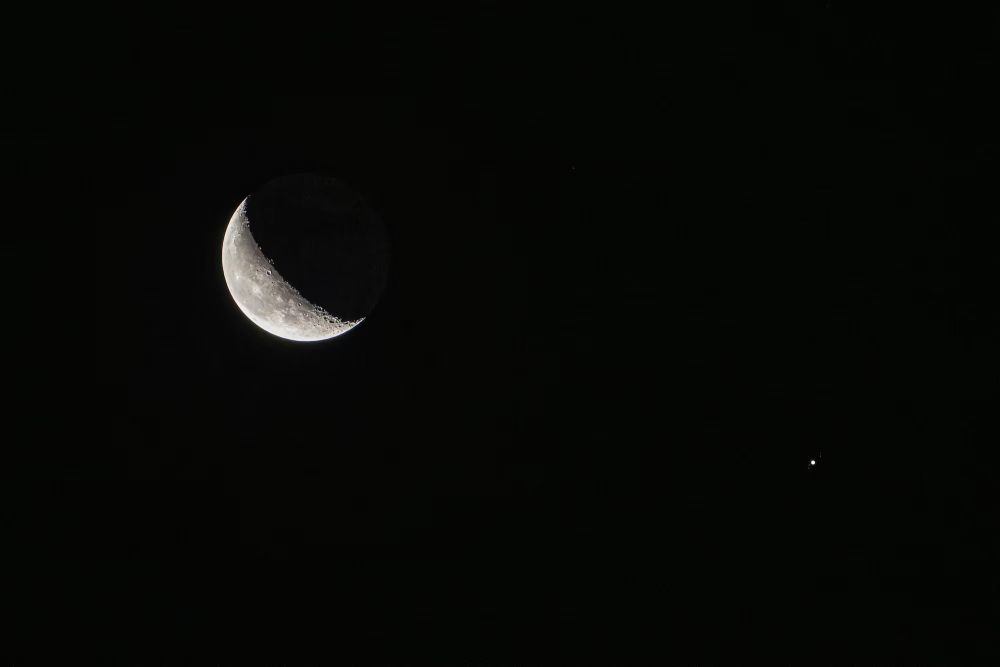 2023年12月22日,在天津市西青区拍摄的木星伴月。
