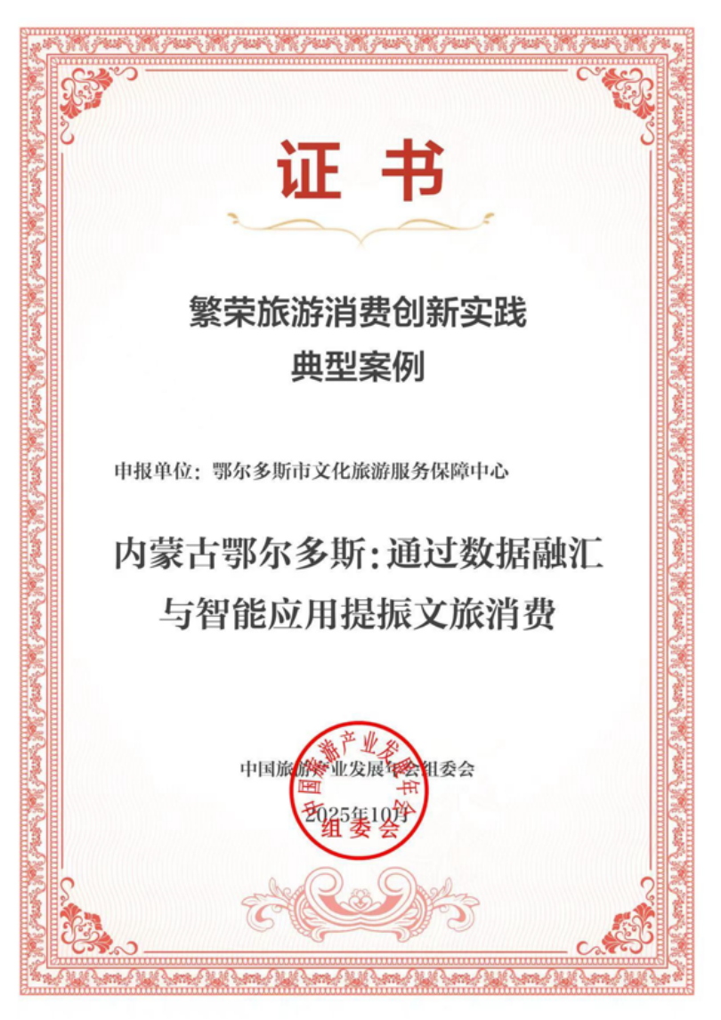鄂尔多斯市“通过数据融汇与智能应用提振文旅消费”案例成功入选2025繁荣旅游消费创新实践典型案例