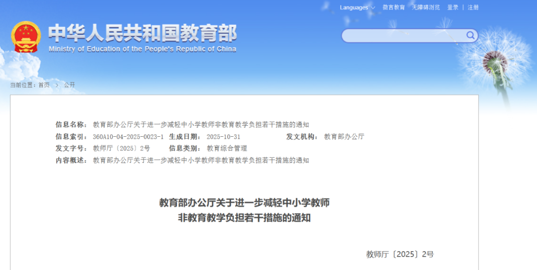 近日,教育部印发《关于进一步减轻中小学教师非教育教学负担若干措施的通知》,对深化中小学教师减负工作作出系统部署。提出8条措施: