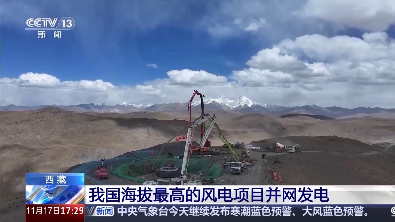 11月17日,从中国华电集团获悉,位于西藏山南的琼结风电项目正式并网发电。项目风机点位最高海拔5370米,投产后成为我国在运行的海拔最高风电场。