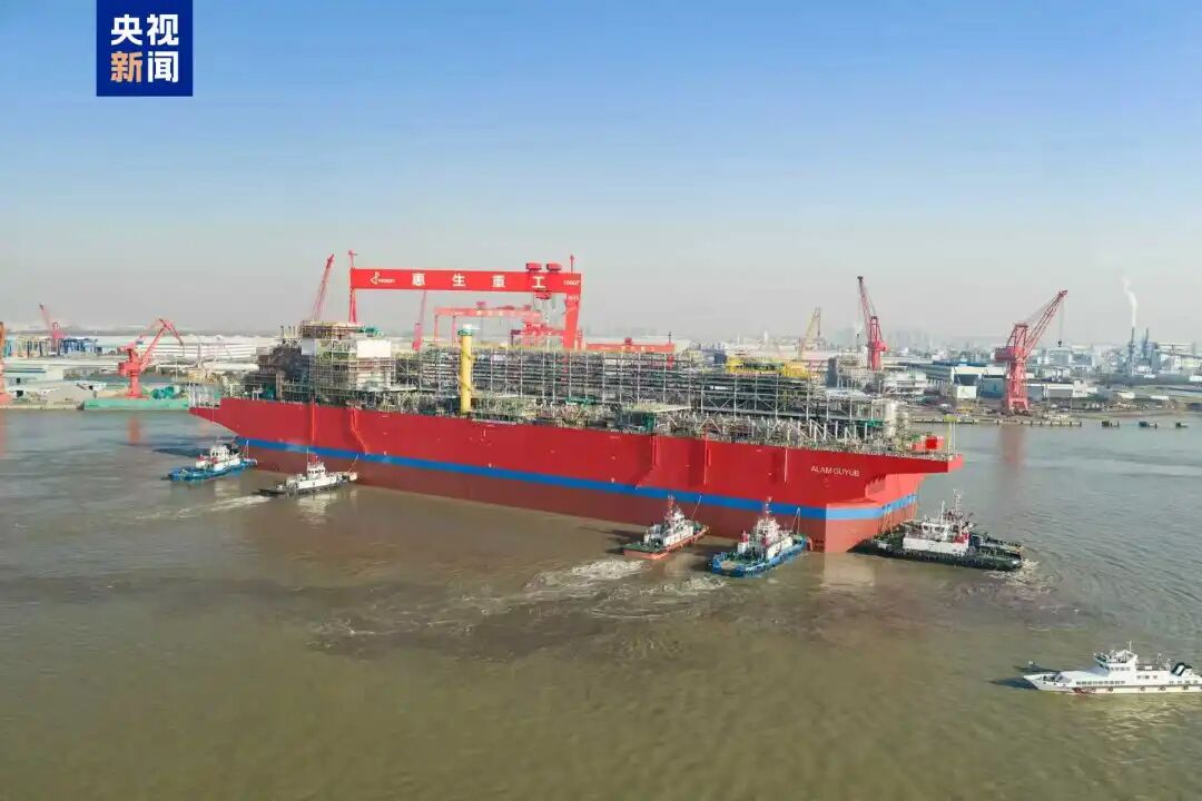 1月3日,在南通海事局海巡艇和拖轮的全程维护下,由江苏南通一家企业建造的大型浮式天然气液化装置“F450 FLNG”轮顺利出坞,并安全靠泊舾装码头。FLNG技术复杂、附加值高。该装置是印尼首个、全球第九个FLNG项目。