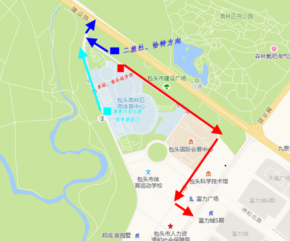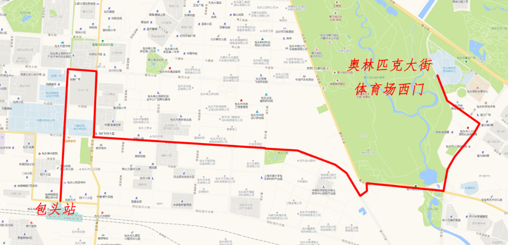 (2)线路走向:包头站—阿尔丁大街—黄河大街—民族东路—稀土大街—嘉祥道—黄河大街—建华南路—沙河街—奥林匹克大街体育场西门;