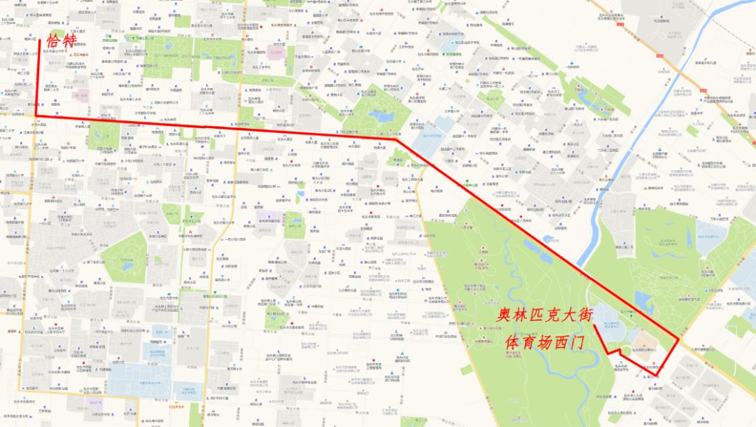 (2)线路走向:东站—南门外大街—环城路—西脑包大街—巴彦塔拉大街—黄河大街—文明路—沙河街—奥林匹克大街—奥林匹克大街体育场西门;