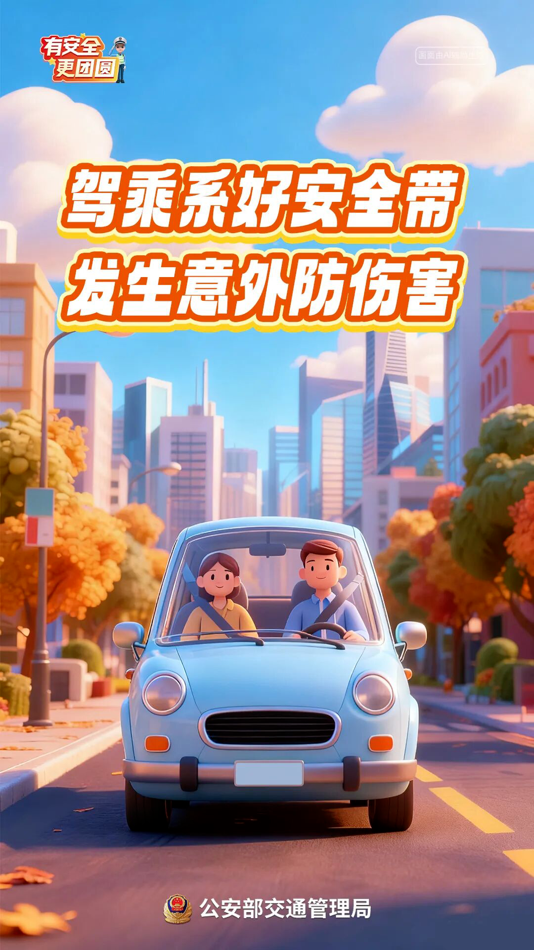 4.系好安全带。规范使用安全带,发生交通事故时至少减轻40%的伤害。前排、后排驾乘人员都应规范系好安全带,为儿童选用合适的儿童安全座椅。不要抱着儿童乘车或让儿童乘坐、站立在副驾驶位置。