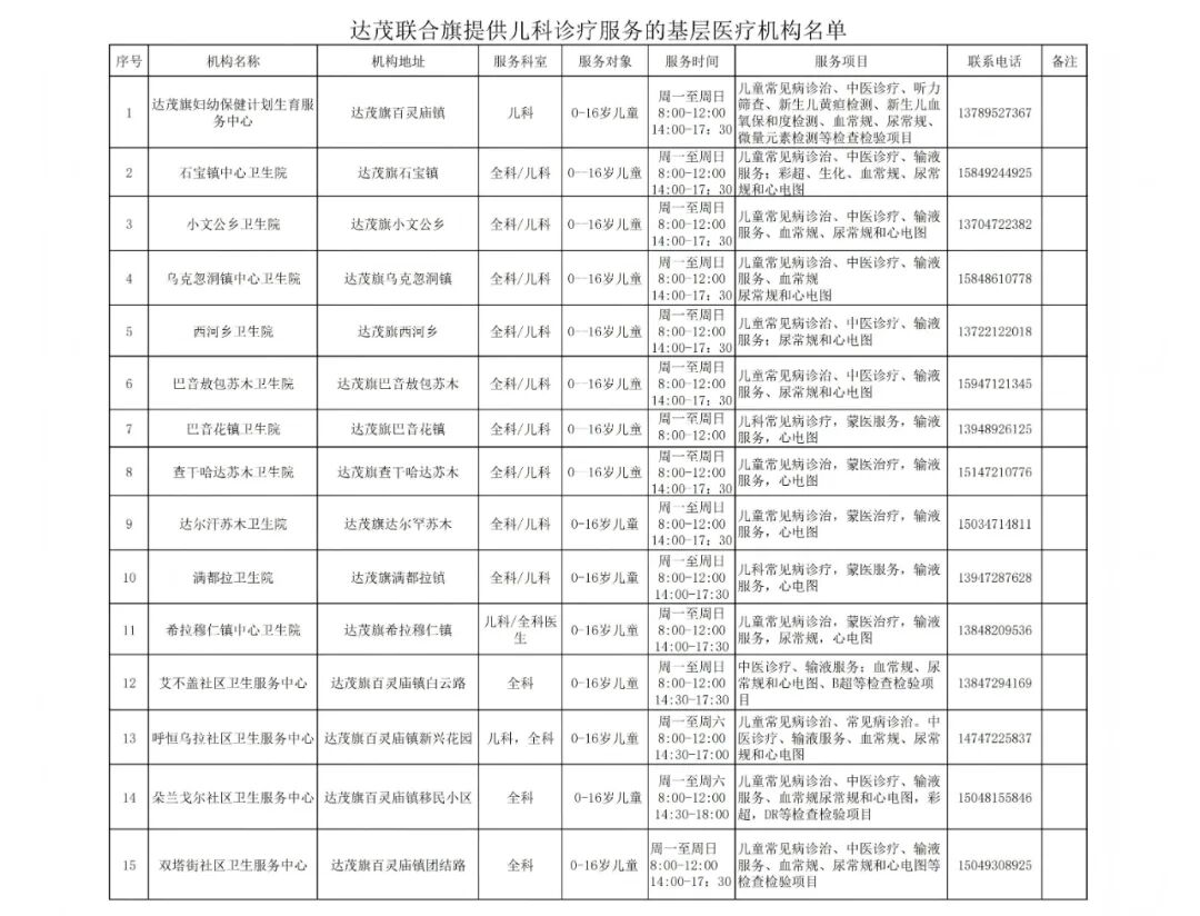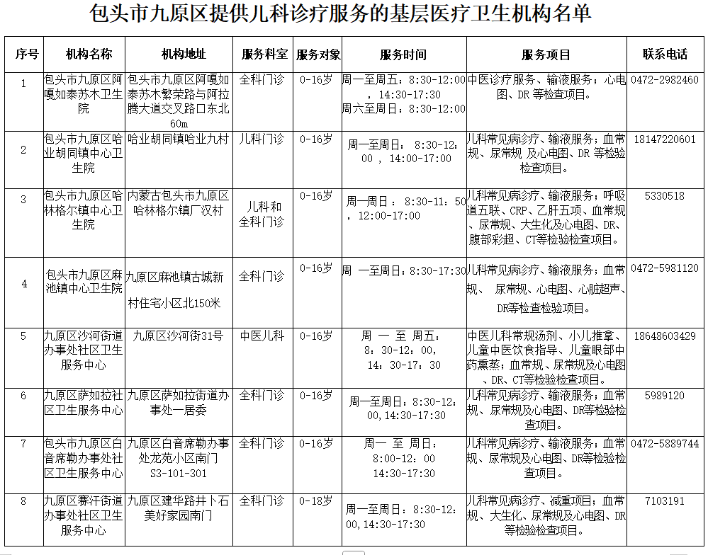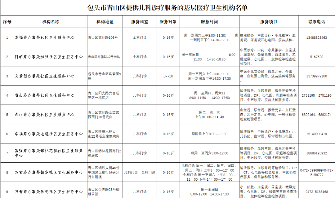 家长们速收藏,这份包头儿科诊疗机构名单超全