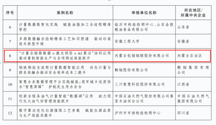 包钢计量数据应用案例入选国家级名单