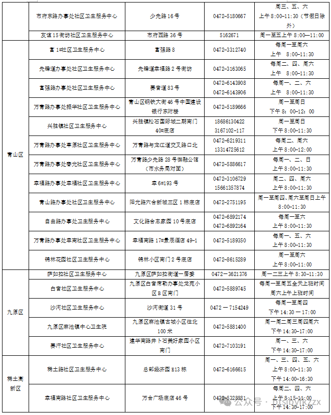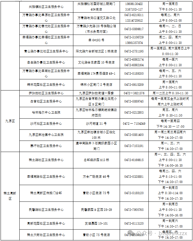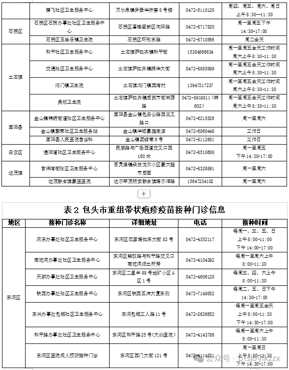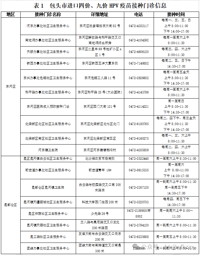 附:《表1 包头市进口四价、九价HPV疫苗接种门诊信息》